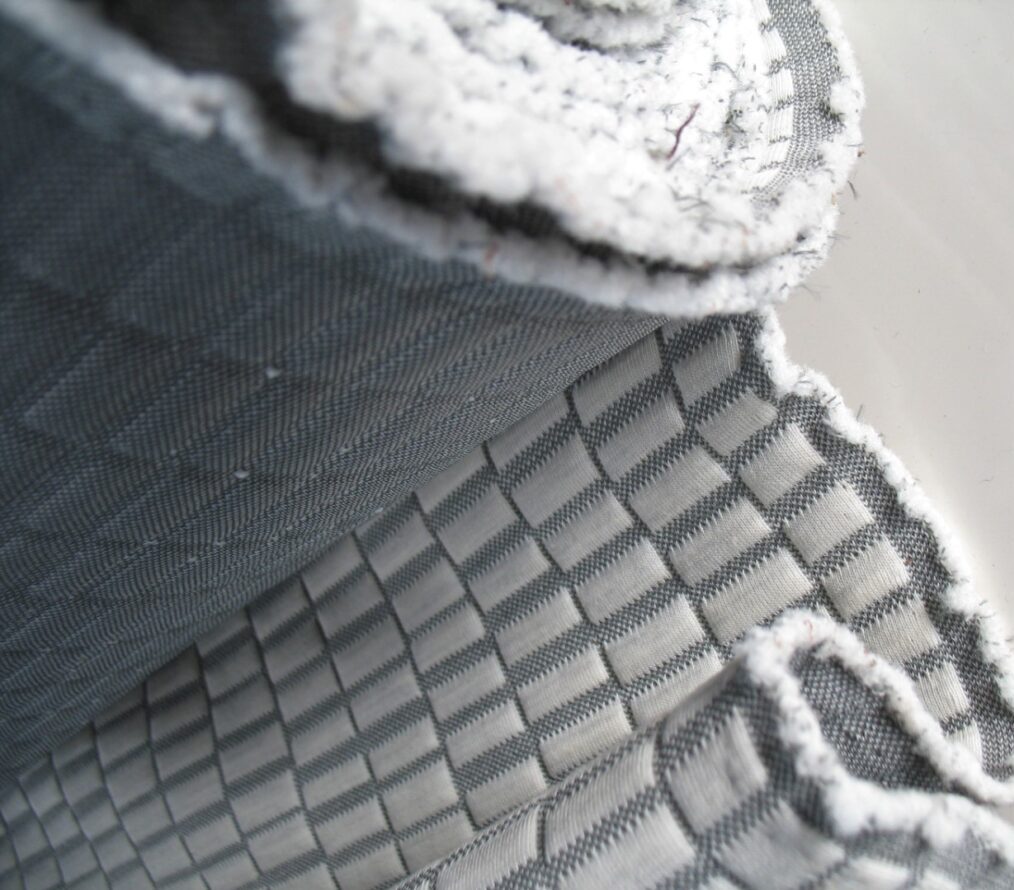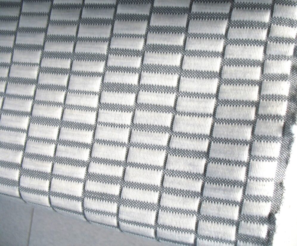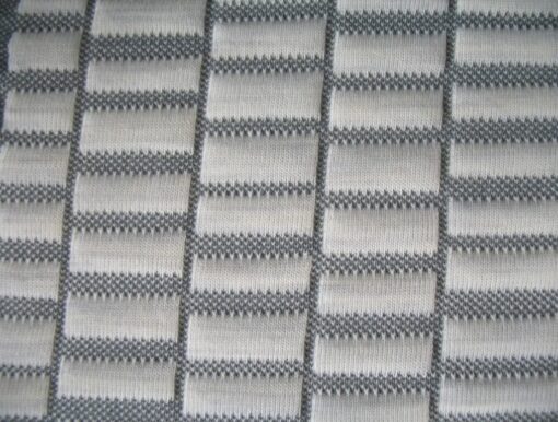 - Patroon: de stof is driedimensionaal: de crème vakjes zijn bovenop de grijze onderlaag gebreid. Ook prachtig voor het maken van kussens etc.!