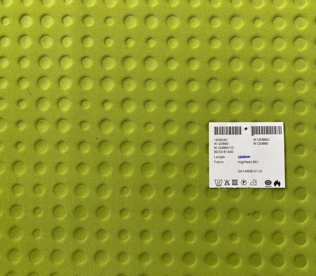- Naam van de stof: Highfield. Bijzondere, luxe meubelstof met in 3D geperste rondjes.