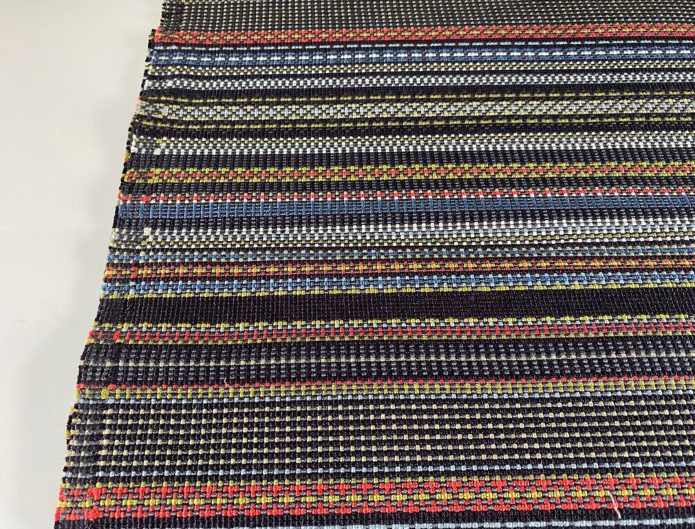 - Kleur: zwart + diverse kleuren, geweven streep patroon in diverse kleuren (kleurnummer 003 Slate and Khai)