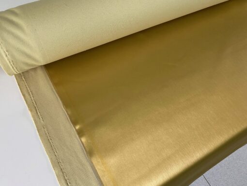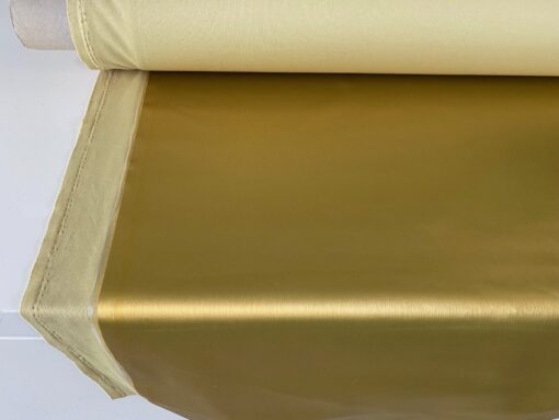 - Kleur: goud, glanzend. Een bijzondere industrieel aandoende stof met een gladde en strakke geborstelde metalen uitstraling. Een eye-catcher voor uw design interieur.