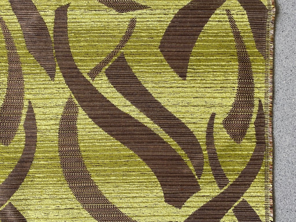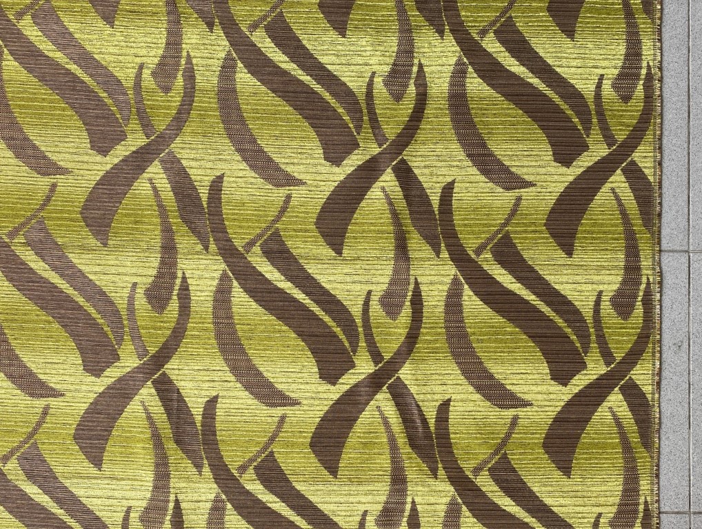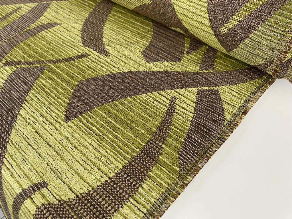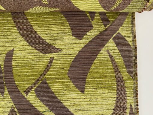 Meubelstof limoen groen bruin in figuratief patroon (en in reliëf)