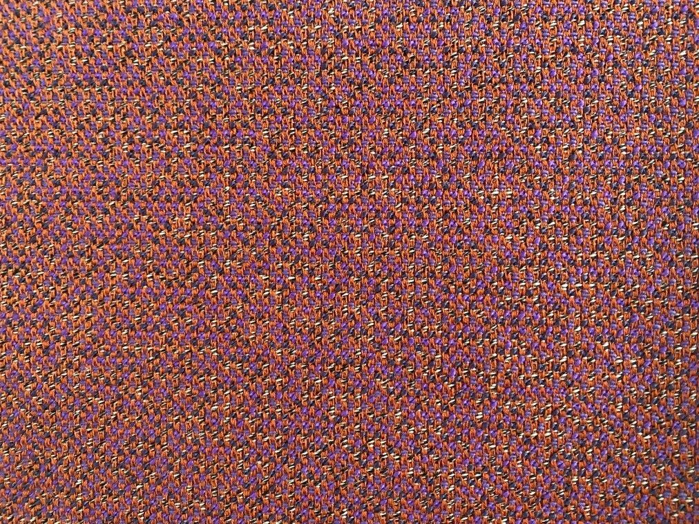 - Kleur: oranje, paars, geel en zwart. Een grof geweven meubelstof met een frisse uitstraling
