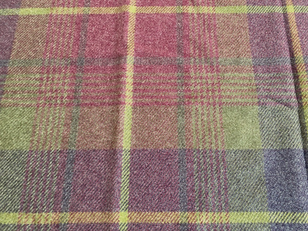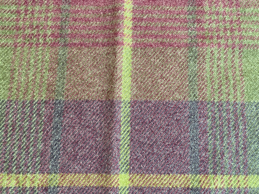- Kleur: paars, roze en groen, geruit patroon (kleurnaam Cairngorm)