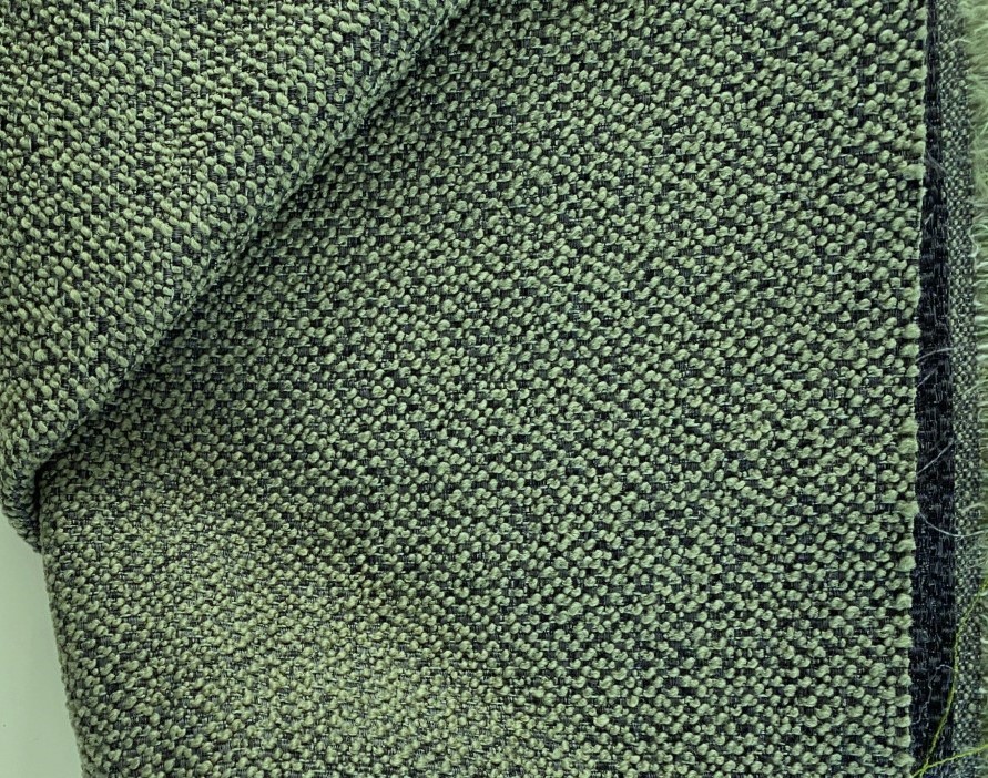 Bouclé meubelstof zacht groen op donker grijze ondergrond