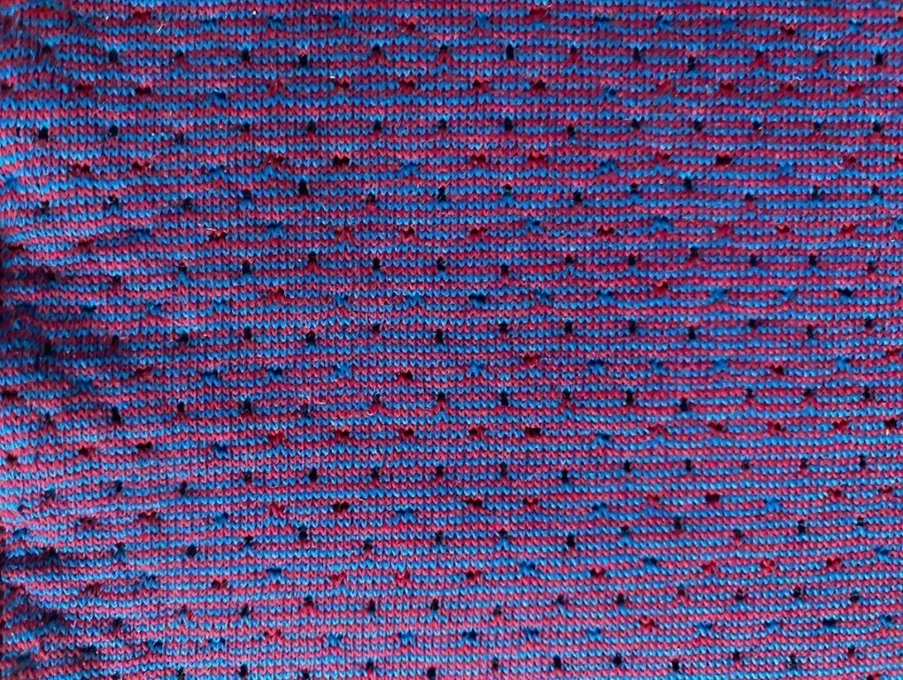 BYBORRE Emma-Stripe 057 Melange Purple in 3D motief 'double knit', gebreid, rood met blauw (totaalbeeld paars), patroon