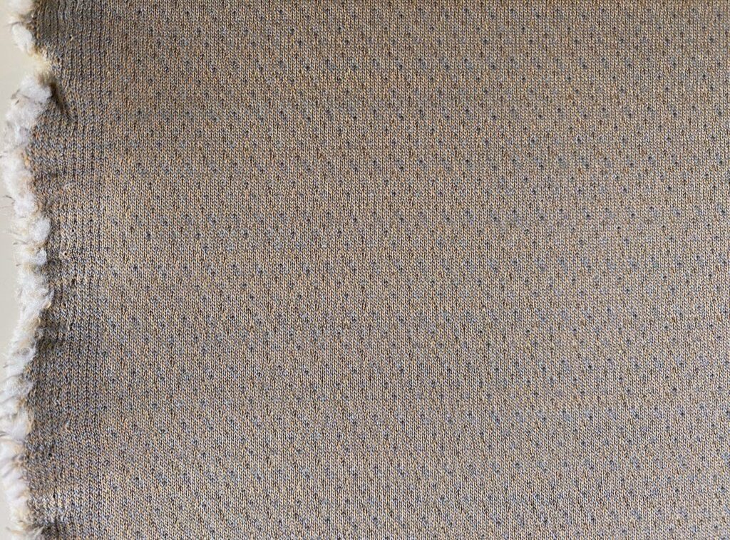 BYBORRE Kyra 3D 027 Beige, beige met lichtblauwe en witte stipjes, in 3D motief 'double knit', gebreid patroon