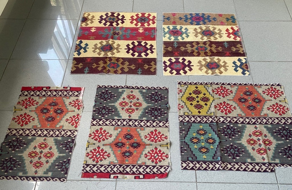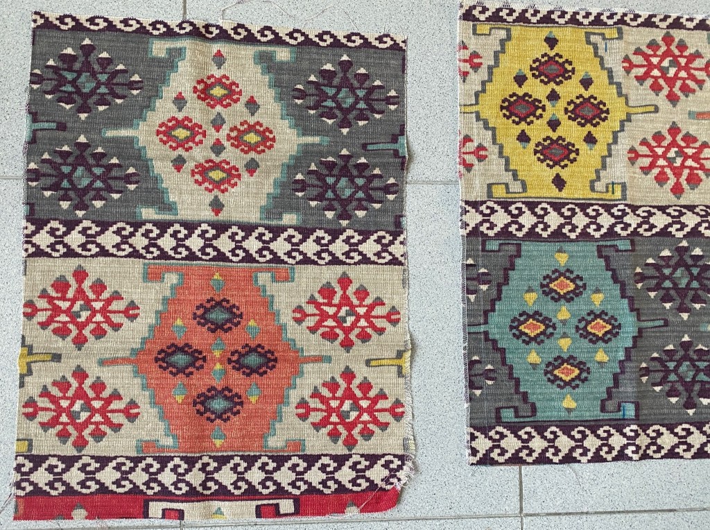 - Kleur: o.a. paars, roze, geel, petrol, camel, groen tinten (met bijzonder geweven patroon)