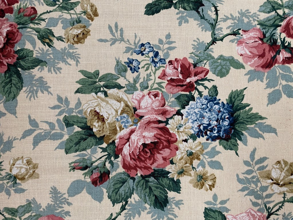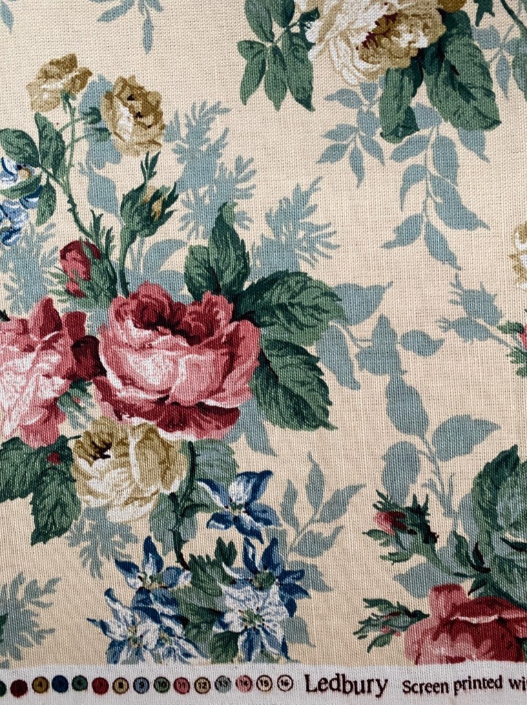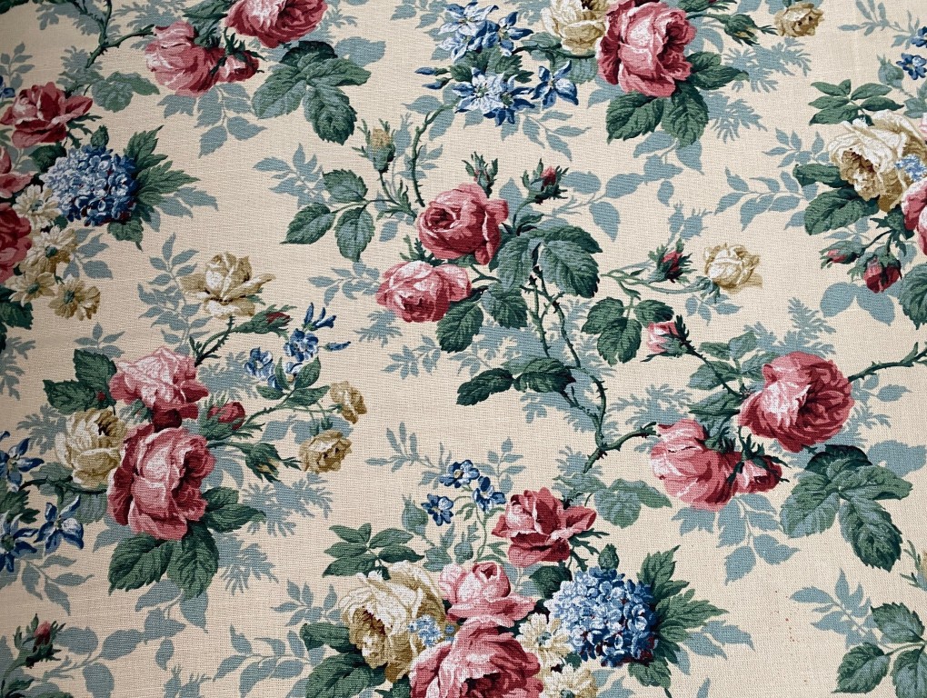 - Kleur: rood, roze, lichtblauw, zacht groen in bloem (o.a. rozen) patroon