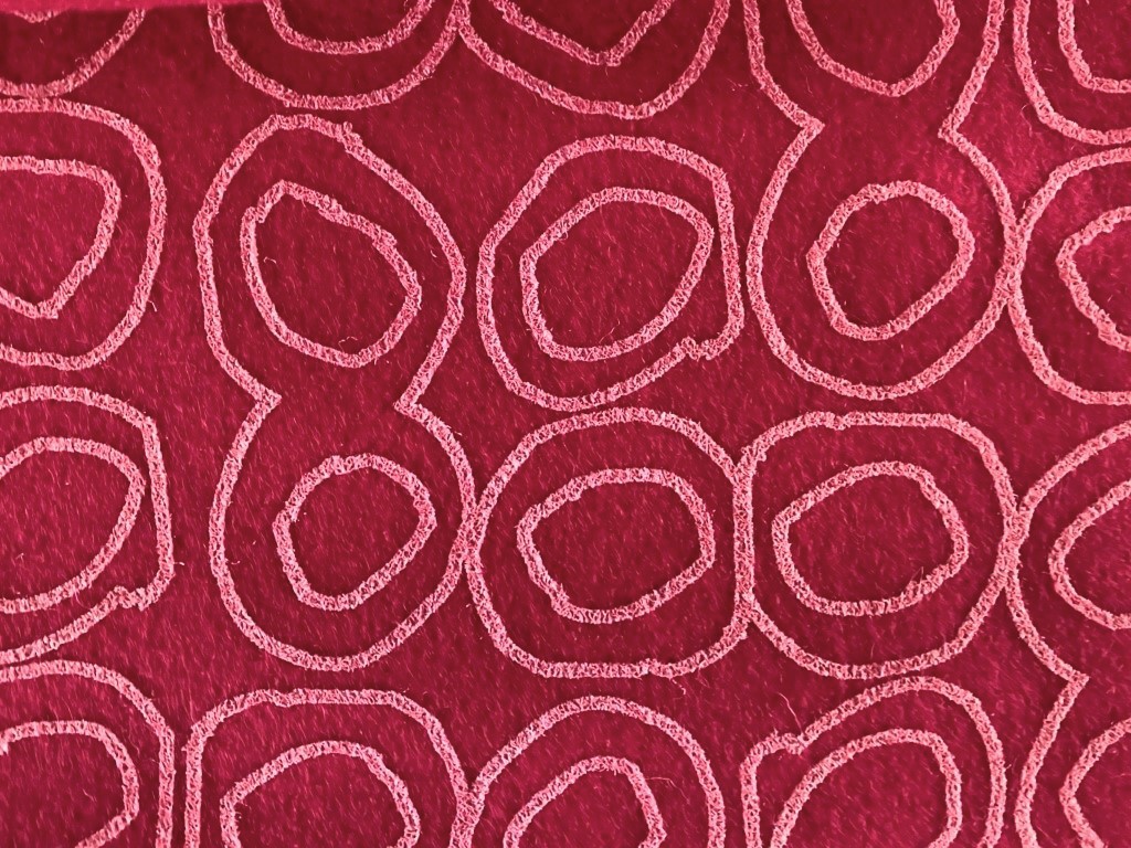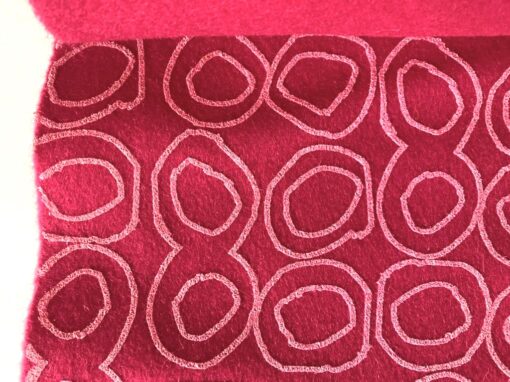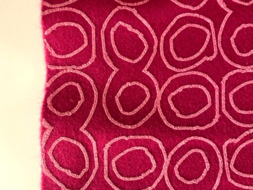 Kvadrat wolvilt – 158 x 141 cm – cyclaam roze met roze cirkels