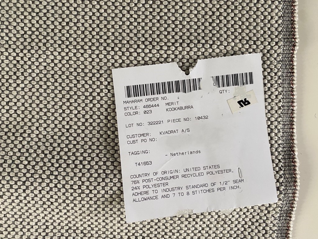 Maharam Merit 023 Kookaburra – 150 x 141 cm – roomwit met grijze ondergrond