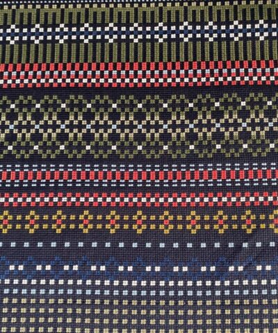- Kleur: zwart + diverse kleuren (o.a. groen, rood, blauw), geweven streep patroon in diverse kleuren (kleurnaam 005 Black and Khaki)