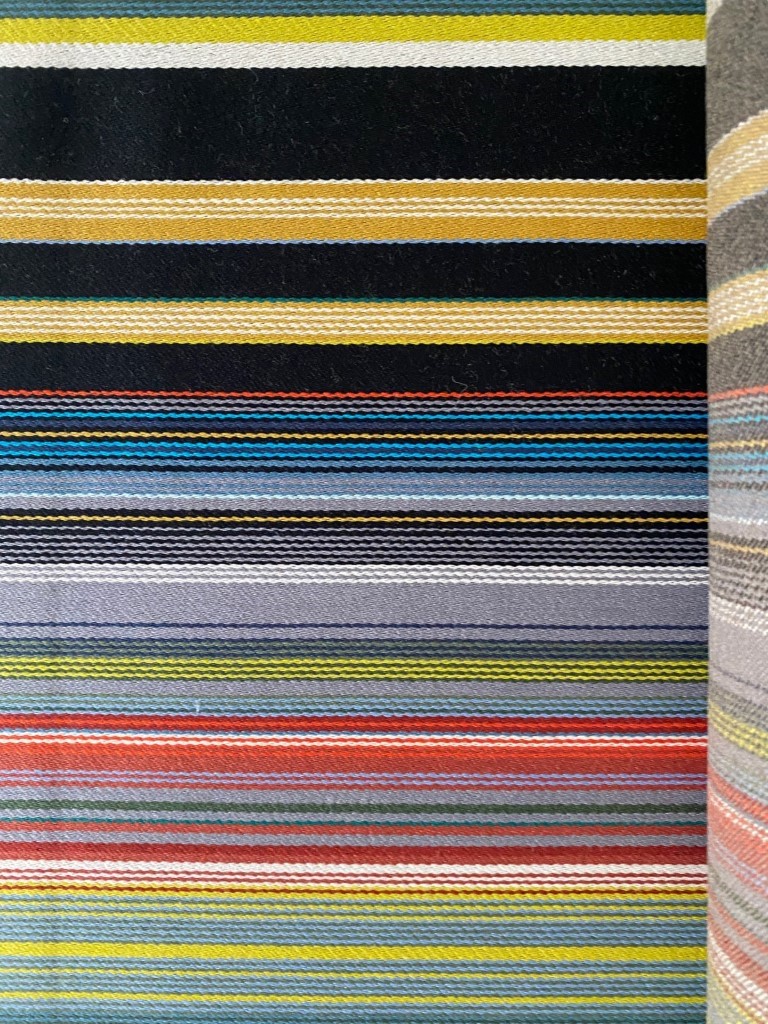 - Omschrijving: Maharam en Paul Smith werken al lange tijd samen. De strepen zijn een kenmerkend handelsmerk van Paul Smith en worden veelal uitgevoerd in gekleurde dikke en dunnere strepen. De bekledingsstof wordt onder meer toegepast op Herman Miller en Artifort meubels. Deze Maharam stof bevat klassieke doch complexe, geweven strepen die contrasterende kleuren en tinten combineren in een harmonieus, modern effect.