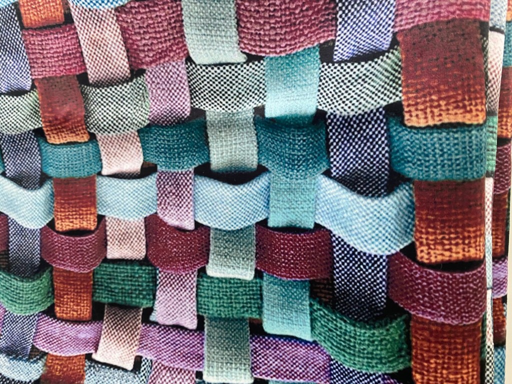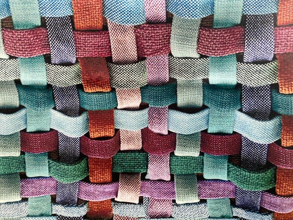 Meubelstof Treccia 015, patroon in o.a. groen, blauw, roze, paars en oranje tinten
