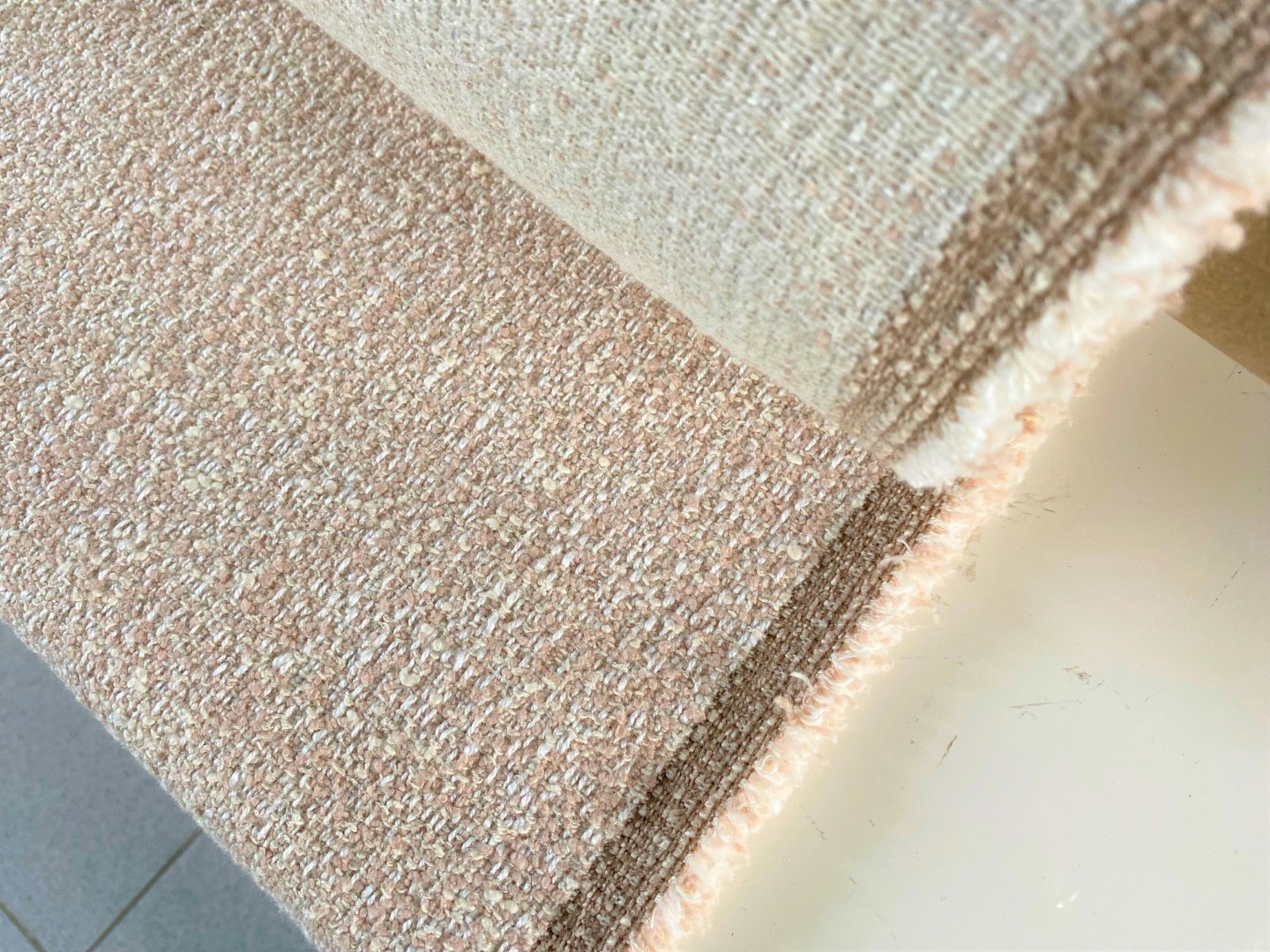 Meubelstof Zagros Bouclé oud roze + crème + witte meubelstof