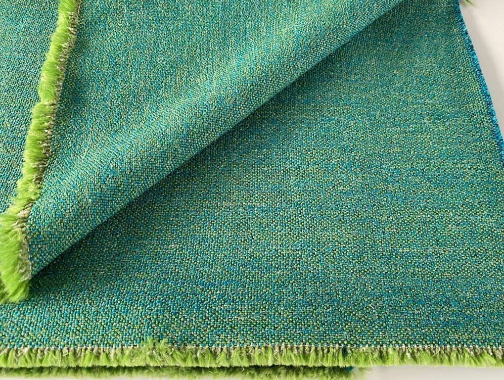 Productspecificaties van de bekledingsstof Montis Miura turquoise met groen gemêleerd: