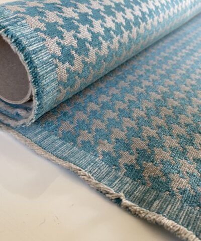 • Kleur: groen turquoise op beige ondergrond in geometrisch pied-de-poule patroon (hounds tooth patroon) (kleurnaam Teal)