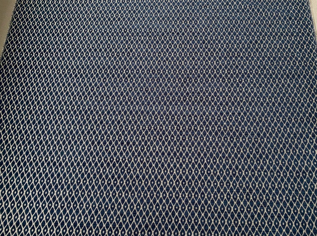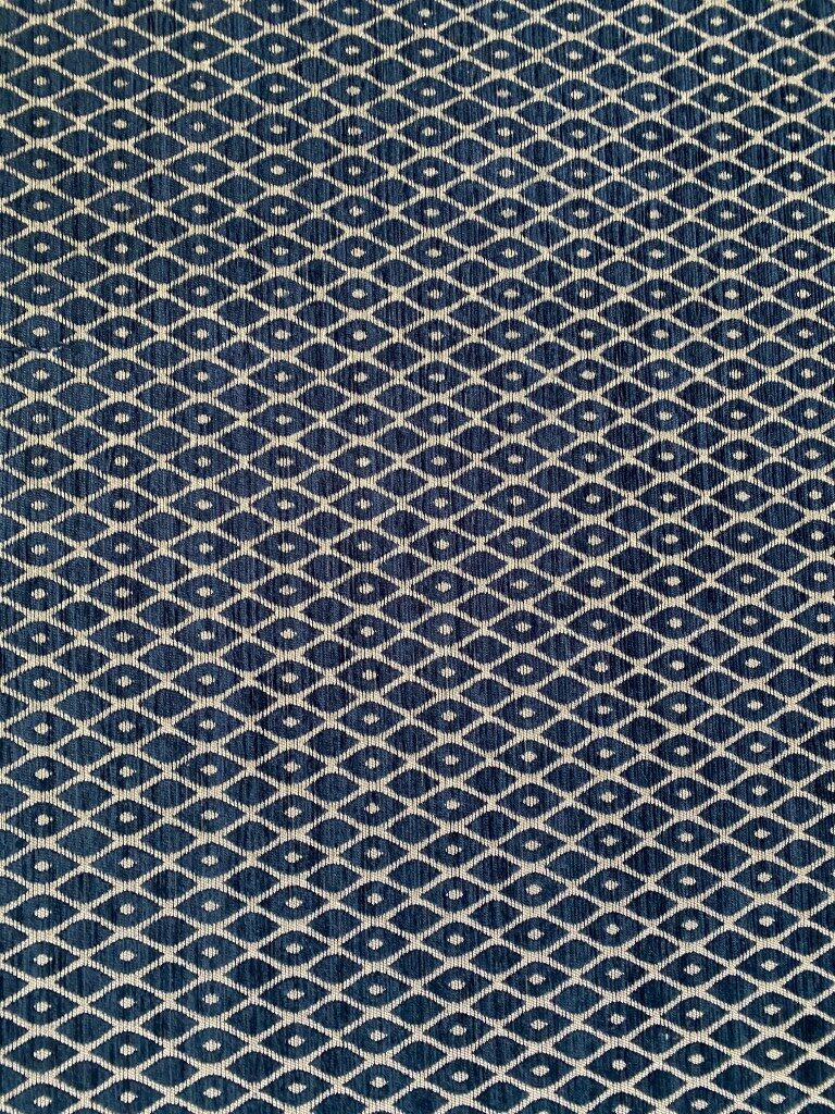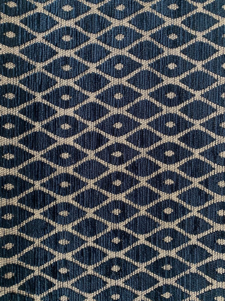 - Kleur: donker blauw met zilver, geometrisch patroon
