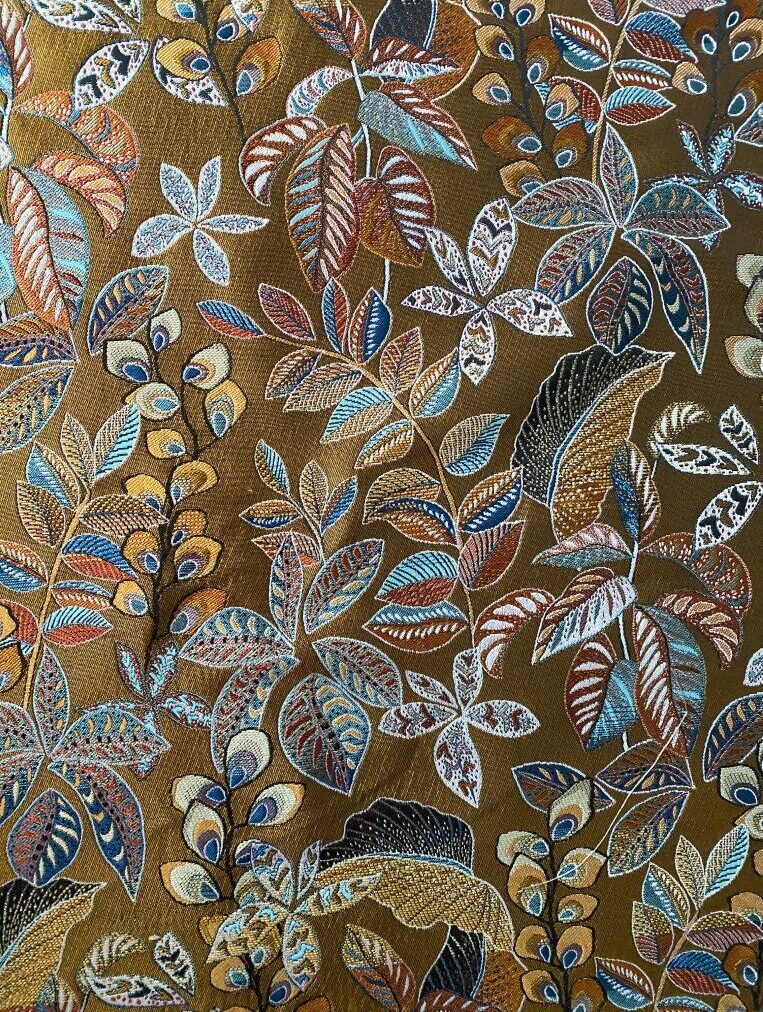 Tresor bloemen meubelstof – 555 x 150 cm – goudbruin met diverse kleuren