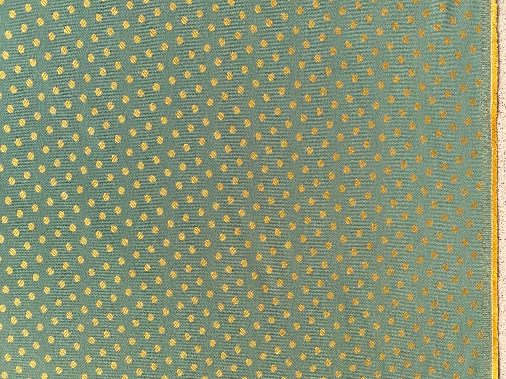 Vintage meubelstof groen goudgeel iets glanzend met 'koffieboontjes' patroon